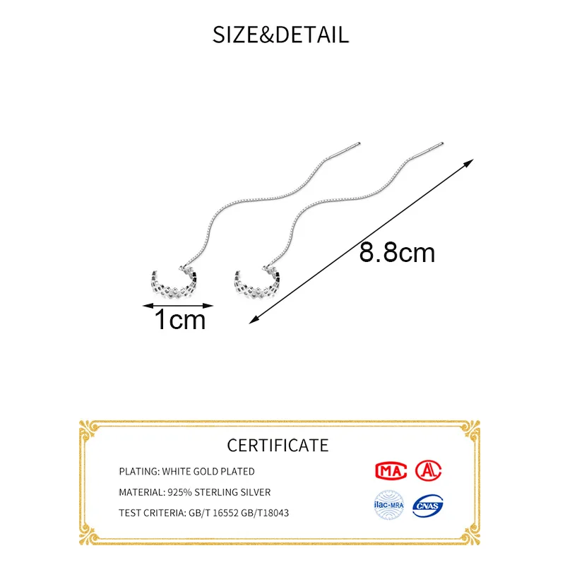 MloveAcc, 100% Стерлинговое Серебро 925 пробы, серьги-цепочки, клип...