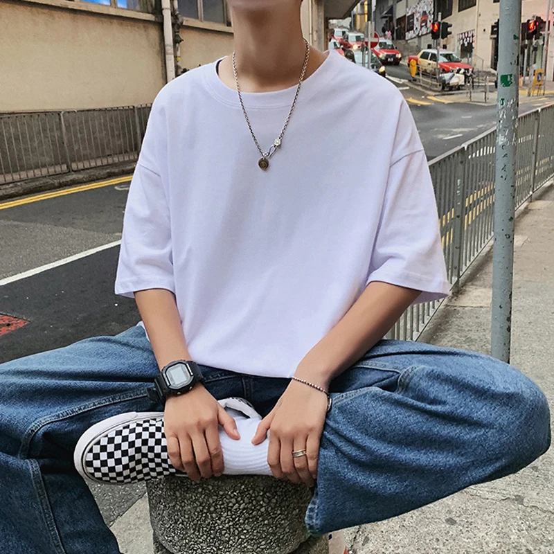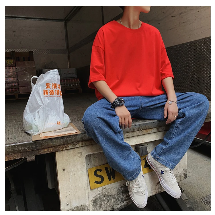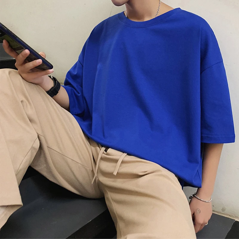 Разборчивые 2022 летние большие хлопковые футболки мужские однотонные уличные мужские свободные повседневные футболки с коротким рукавом футболки мужские