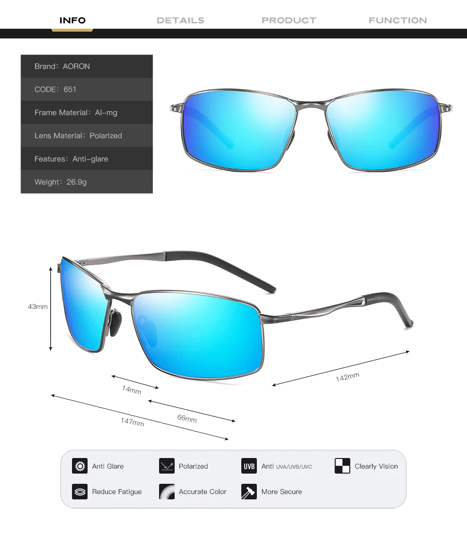 Солнцезащитные очки AORON в прямоугольной оправе UV400 для мужчин и женщин, поляризационные зеркальные, в классическом стиле, с литой оправой