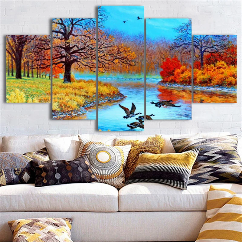 Настенные картины холст картины 5 шт. осенний лес опавших картины л...