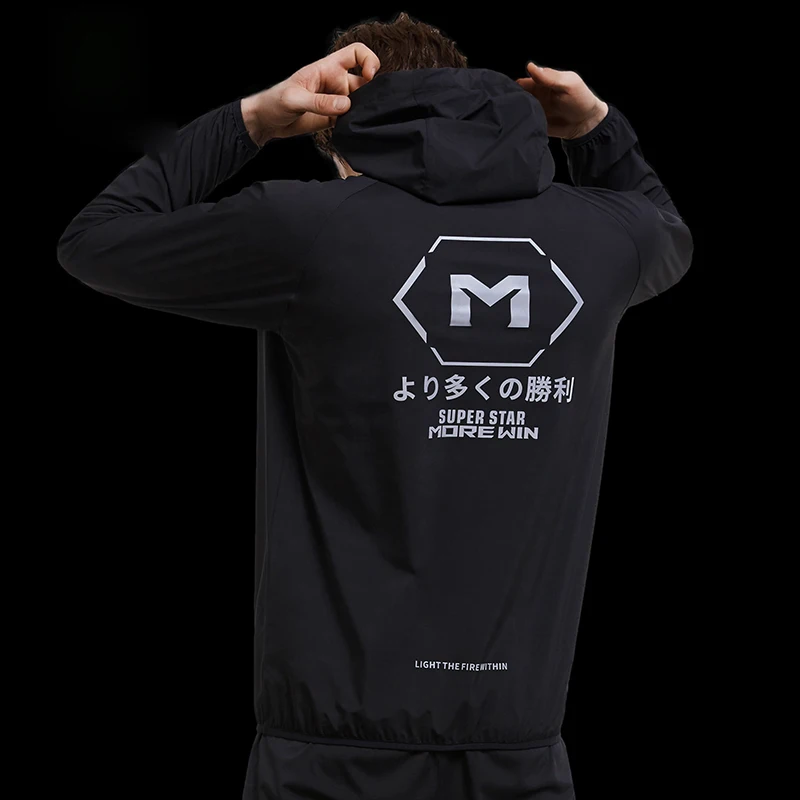 Мужская спортивная куртка на молнии, с капюшоном и защитой от ветра