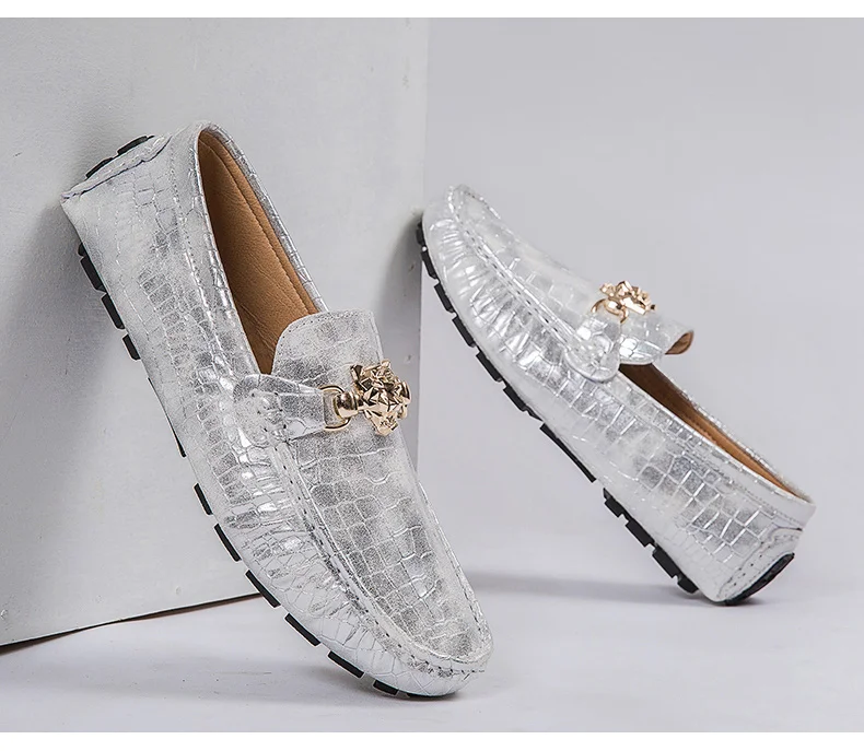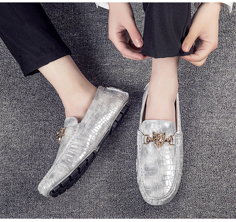 Мужские замшевые лоферы на плоской подошве, дизайнерские дышащие Роскошные Мокасины, без застежки, серебристые, черные