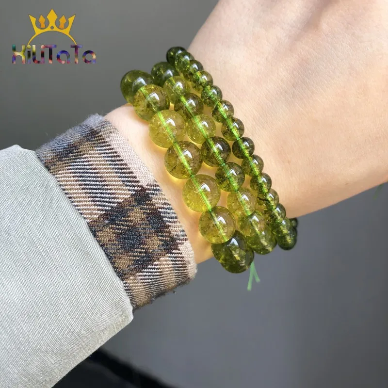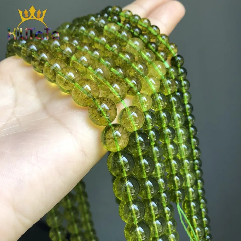 Круглые бусины с отверстием для украшений сделай сам, гладкие Зеленые Бусины с кристаллом из перидота, 6, 8, 10 мм, для изготовления браслетов, 15 дюймовпряди