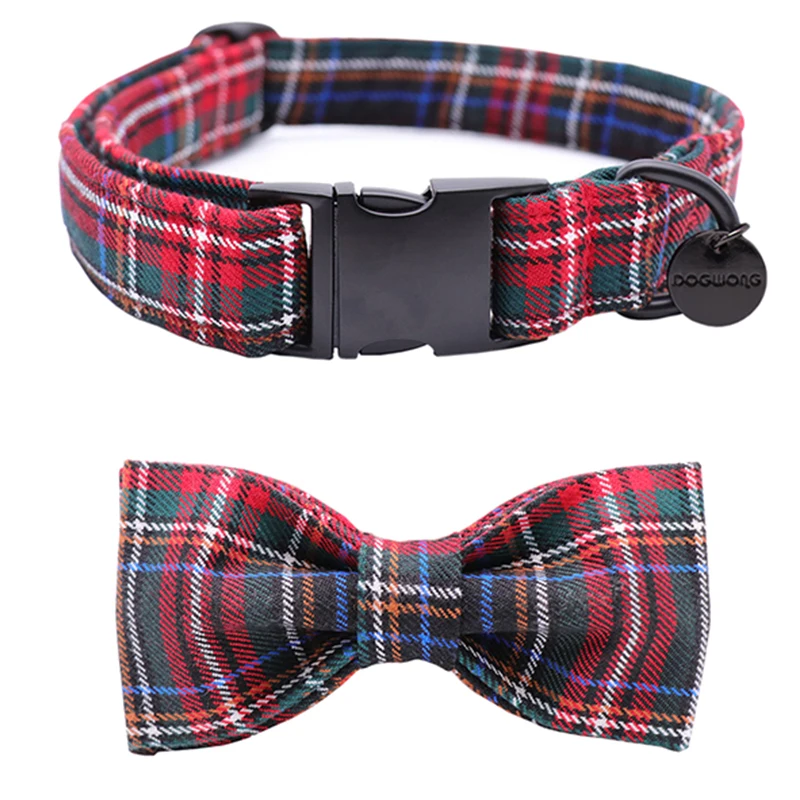 Ошейник и поводок для собак в красную клетку с галстуком-бабочкой, регулируемый персональный аксессуар для щенка из 100% хлопка, подарок на день рождения