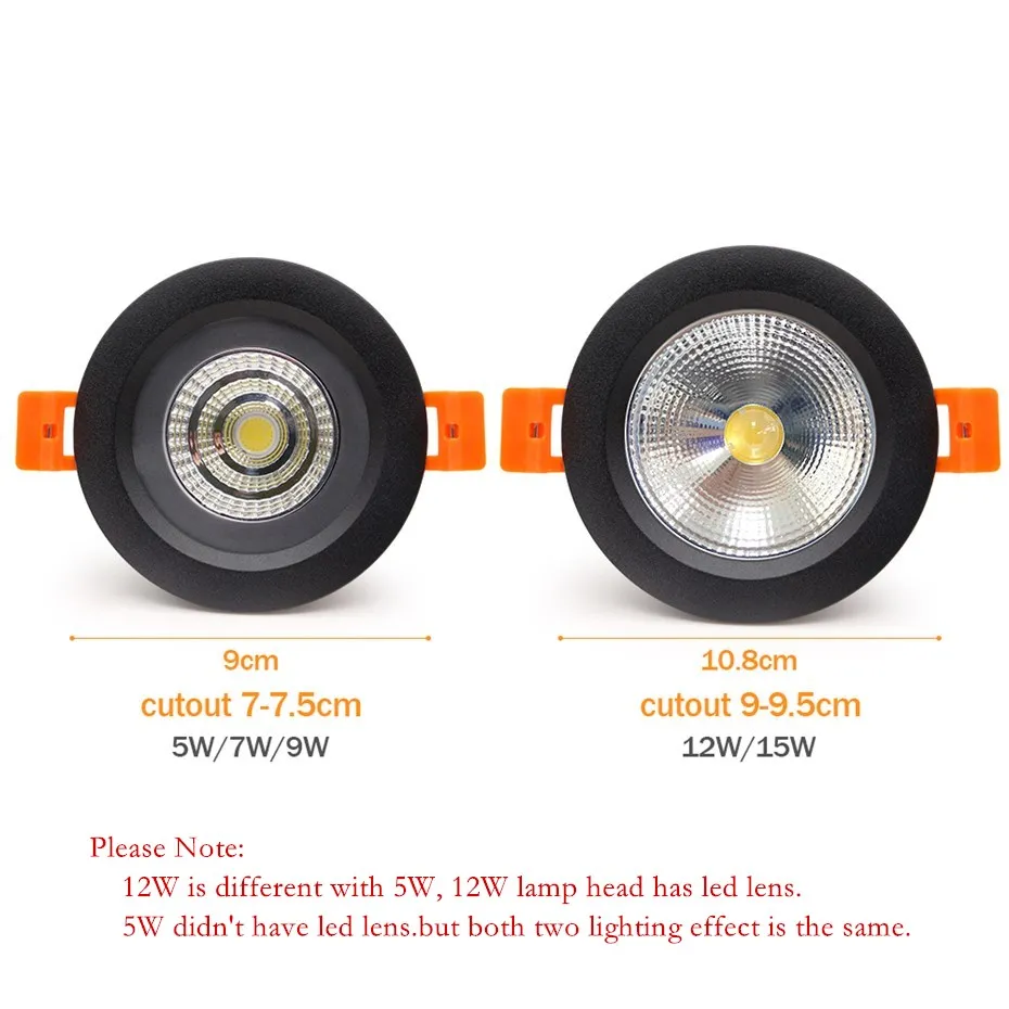IP65 Водонепроницаемый встраиваемый потолочный светильник для помещений 5 Вт 7 Вт 12 Вт 15 Вт COB Точечный светильник для домашнего магазина отелей