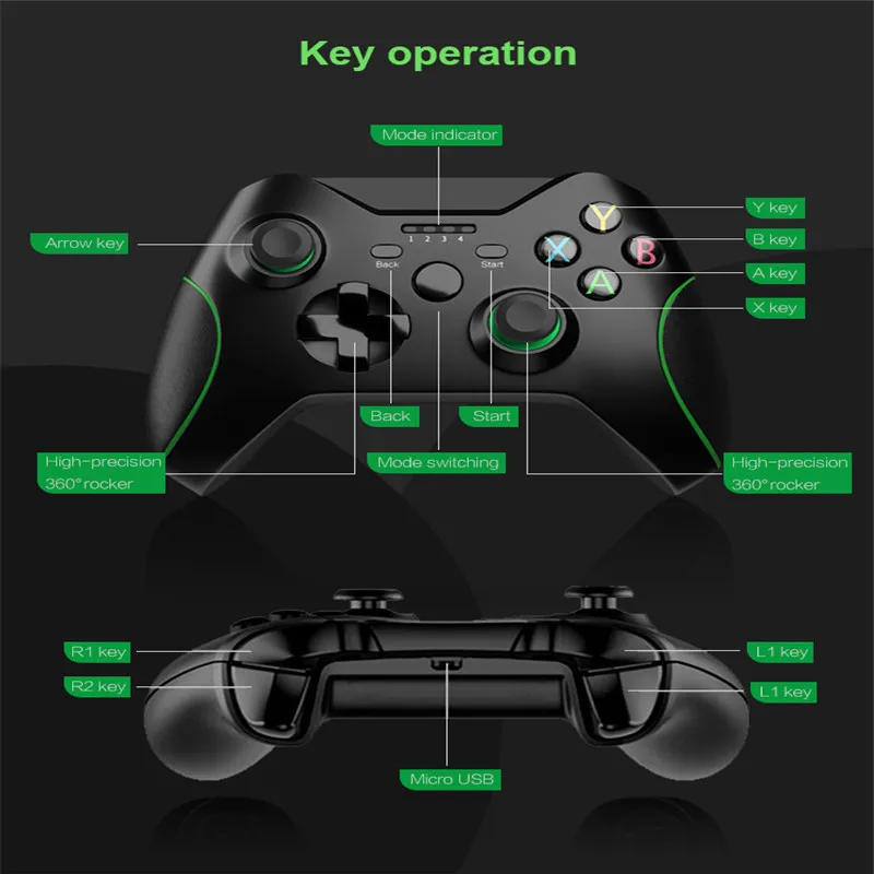 (1) беспроводной геймпад 2,4G, без Bluetooth. Совместим с Android смартфоном для Xbox one для консоли PS3 для Windows PC 7/8/10.