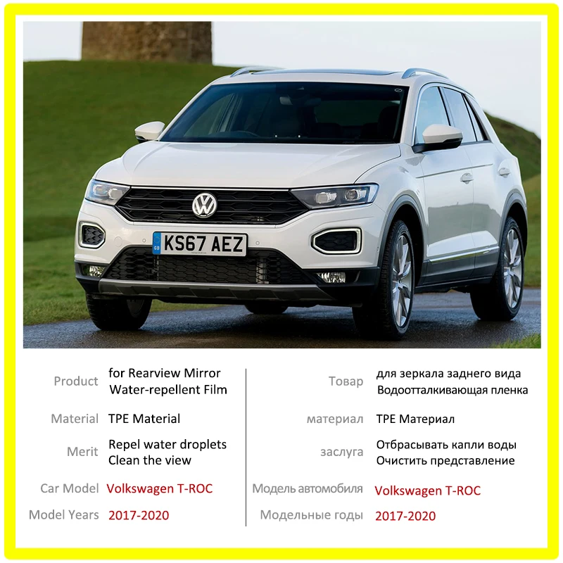 Пленка от дождя на зеркало заднего вида с полным покрытием, прозрачные противотуманные непромокаемые наклейки для Volkswagen VW T-Roc 2017-2020, автомобильные аксессуары, товары