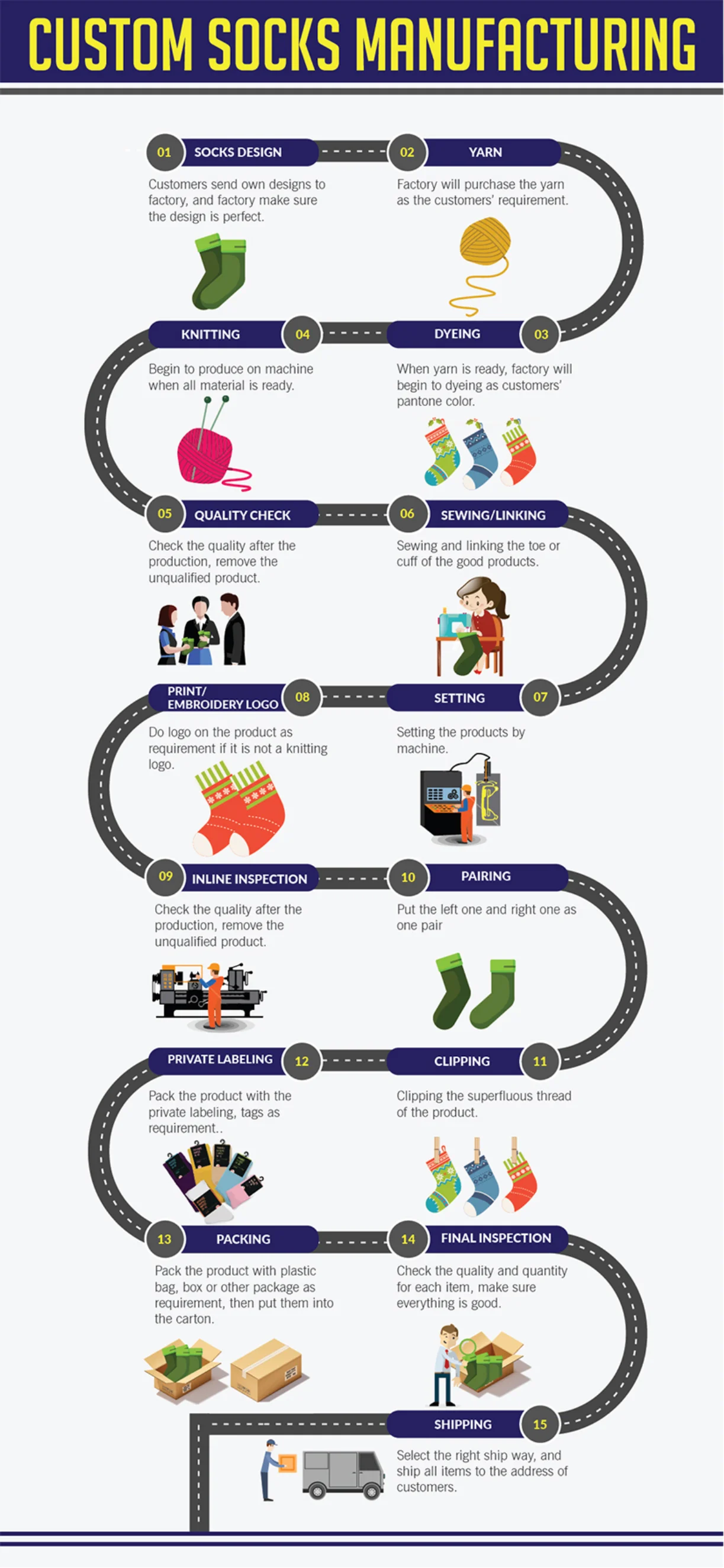 Q1. Можем ли мы использовать наш собственный логотип или дизайн? Да, вы можете. И у нас есть профессиональные дизайнеры, если у вас есть только идея. Q2. Могу ли я получить бесплатный образец? Образцы на складе могут быть предложены бесплатно, но не по индивидуальному заказу. В3. Есть ли у вас широкий ассортимент товаров на складе для продажи? Да, пожалуйста, сообщите, какой тип носков вы хотите. В4: какой материал вы можете использовать? О: хлопок, спандекс, нейлон, полиэстер, бамбук, coolmax, акрил, чесаный хлопок, мерсеризованный хлопок, шерсть Q5: Могу ли я сделать свой собственный дизайн? О: Да, мы можем сделать образцы в соответствии с вашим дизайном или оригинальным образцом, индивидуальным размером и индивидуальным цветом, образцы будут сделаны для подтверждения перед массовым производством. В6: Могу ли я иметь свой собственный бренд или логотип на вашей продукции? О: Да, мы рады быть Вашим долгосрочным производителем OEM в Китае. Вопрос 7: Как я могу поверить, что после оплаты вы отправите мне товары и гарантию качества? О: мы специализируемся на экспорте внешней торговли более 10 лет, искренне ведем бизнес так важно. Мы принимаем торговую гарантию Alibaba, вы получите все свои деньги от компании alibaba, если мы не дадим вам продукты. В8: Могу ли я посетить вашу фабрику перед заказом? О: Конечно, добро пожаловать на наш завод.
