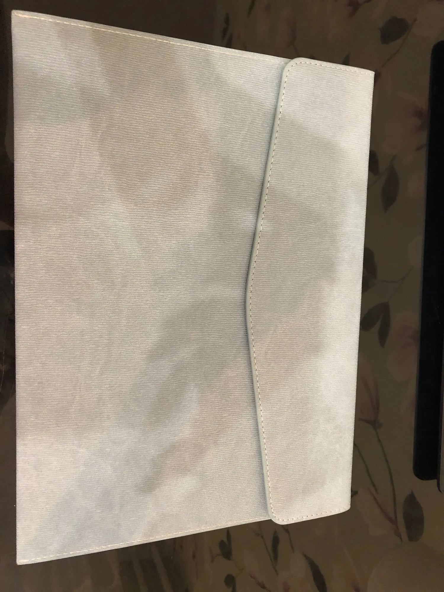 Папка не имеет ничего общего с фотографией. Это очень мягкий чехол, и материал оставляет желать лучшего. Он маленький и подходит и вынимает листья в конце концов сгибаются, потому что внутри это очень плохо сделано.