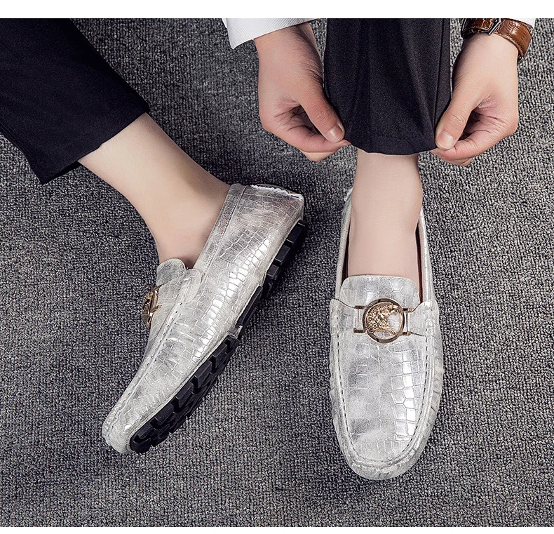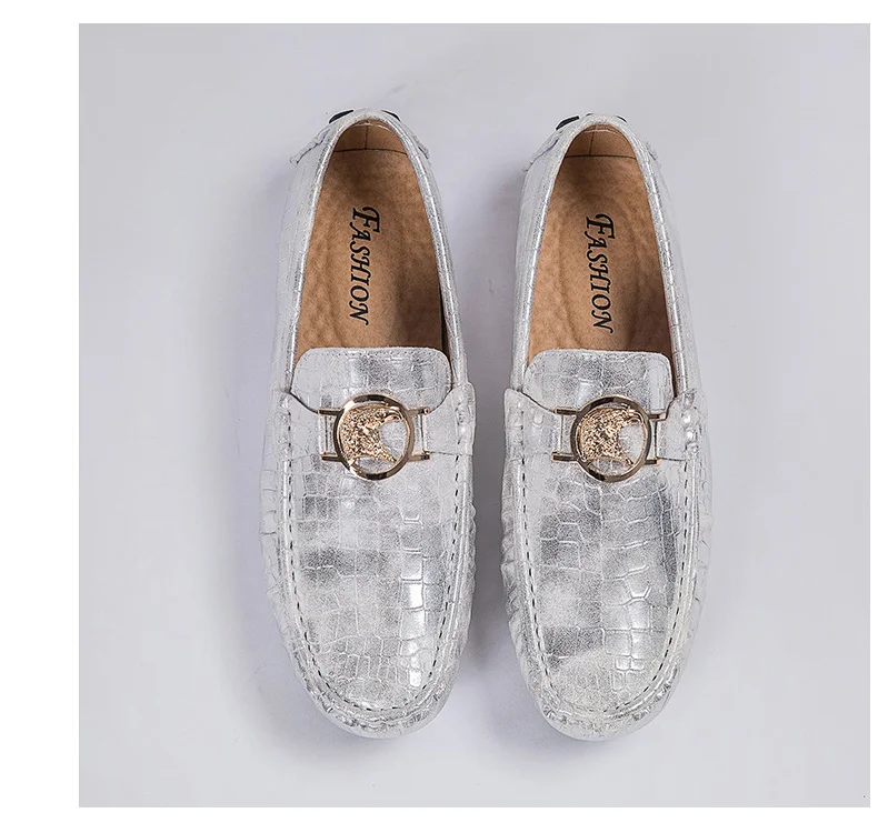 Мужские туфли из крокодиловой кожи, серебристые повседневные Мокаси...