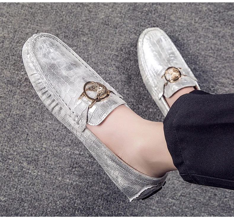 Мужские лоферы, Летние слипоны, мужская повседневная обувь на плоской подошве, модные роскошные кожаные мокасины, мужские водонепроницаемые Мокасины серебристого и черного цвета