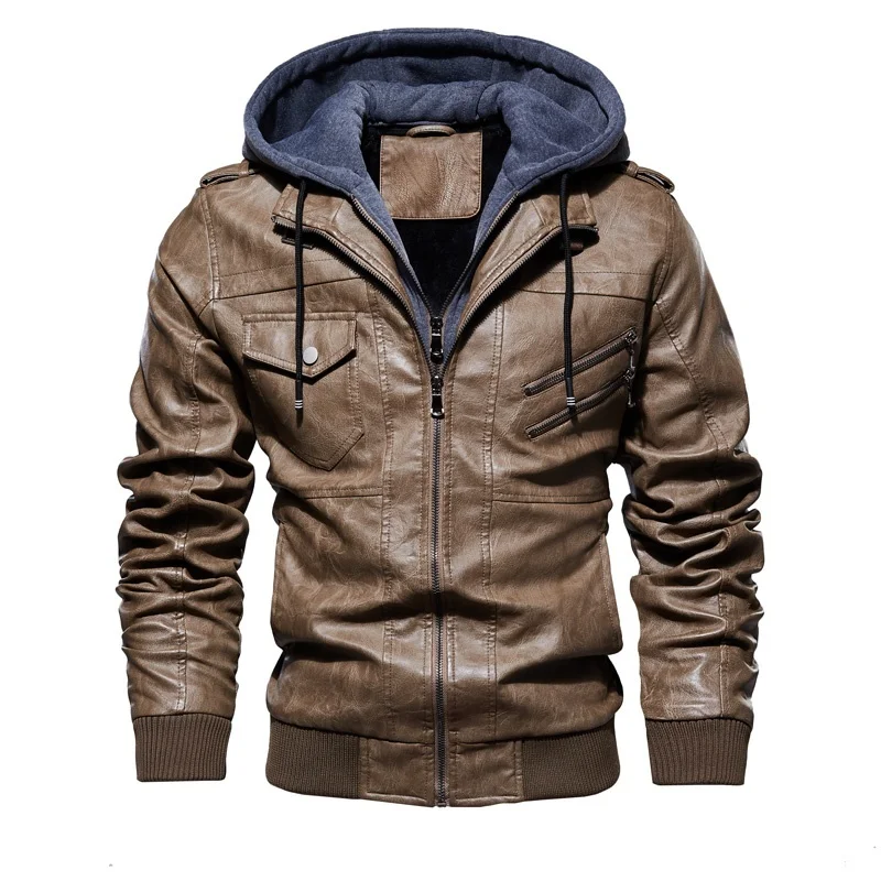 Куртка-бомбер мужская зимняя из искусственной кожи, на молнии