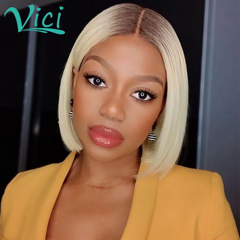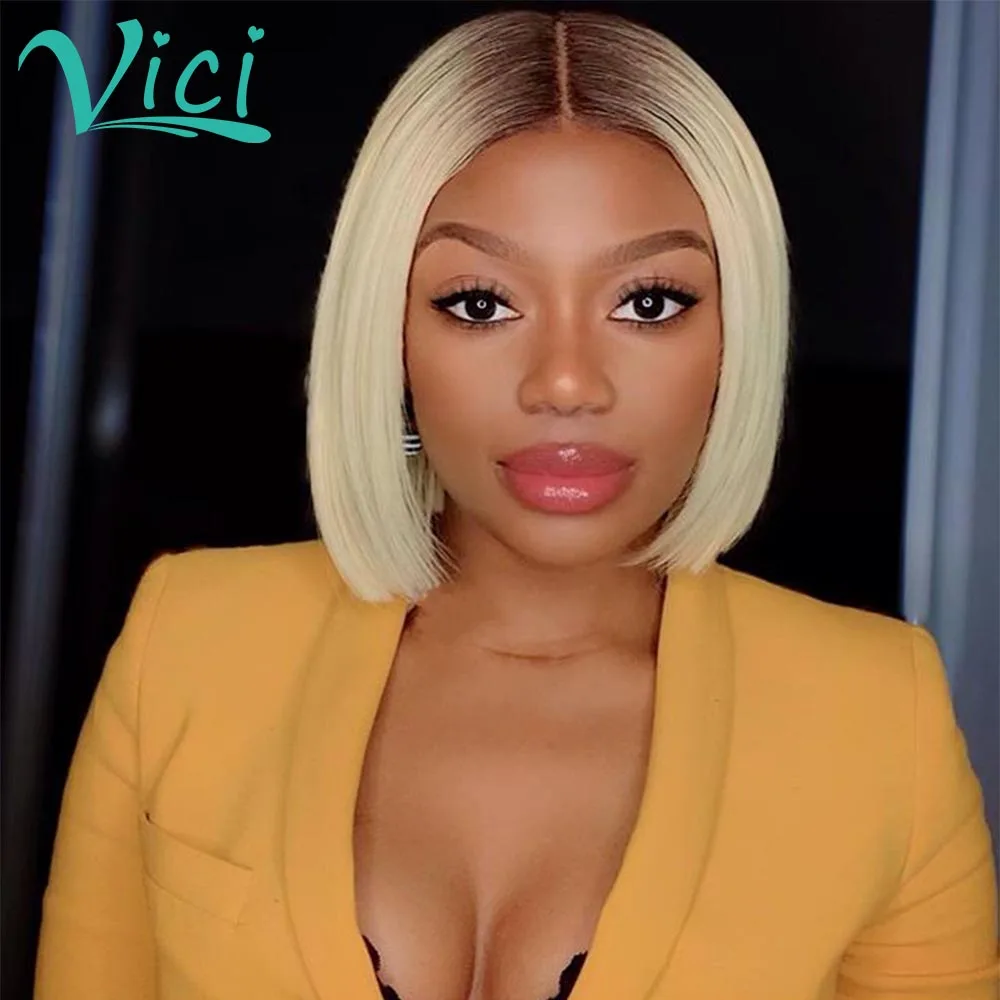 613 короткий парик, парик из человеческих волос с перехлёстом, парик из черных и коричневых корней, с предварительно выщипанными цветными T-образными деталями, парик блонд
