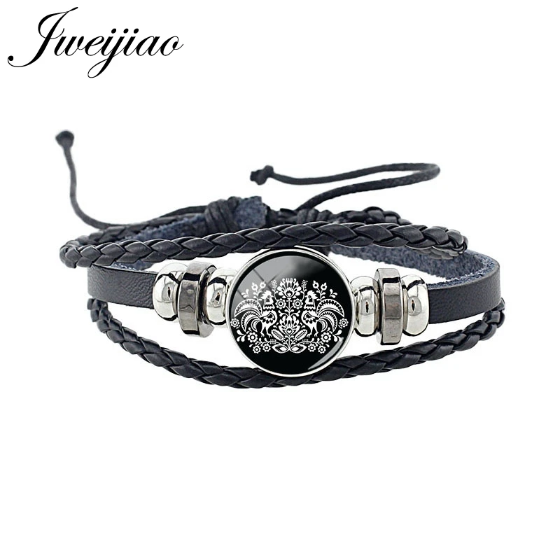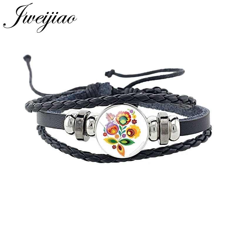 JWEIJIAO Польша фольклорное искусство фото стекло искусственная кожа ручной работы металлические застежки браслеты ювелирные изделия аксессуары PF125