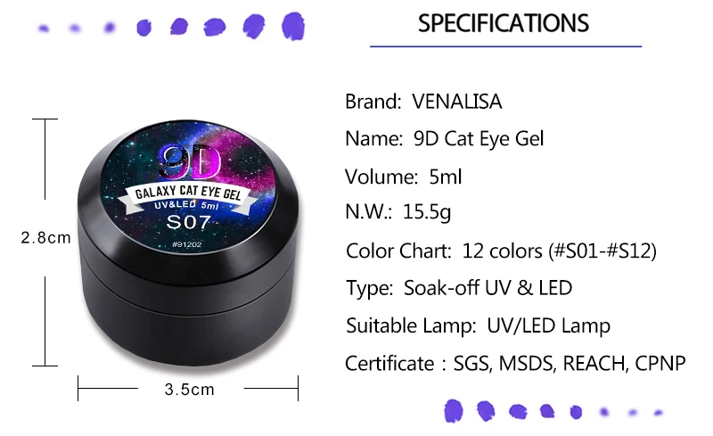 Магнитный Гель-лак для ногтей VENALISA 9D с эффектом хамелеон, 5 мл