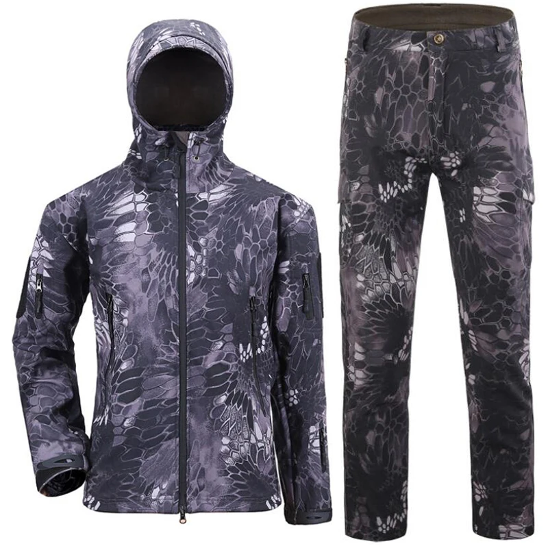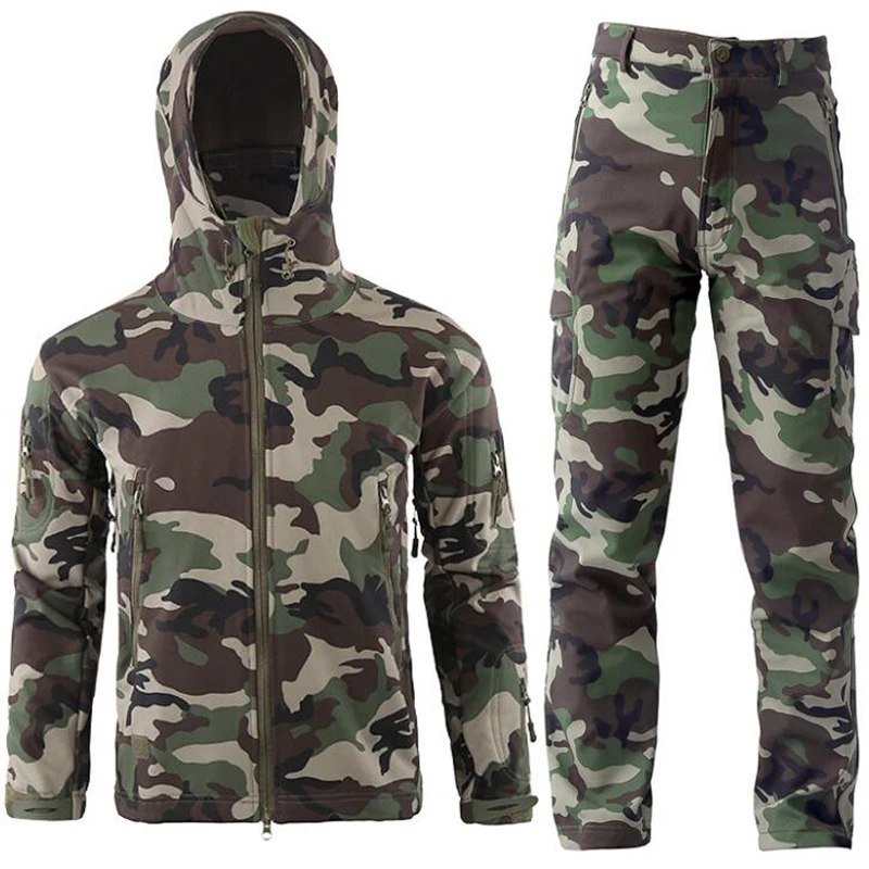 Уличный Камуфляжный спортивный костюм из мягкой оболочки, ветровка, водонепроницаемая куртка + штаны, Тактическая Охота, альпинизм, мужская одежда