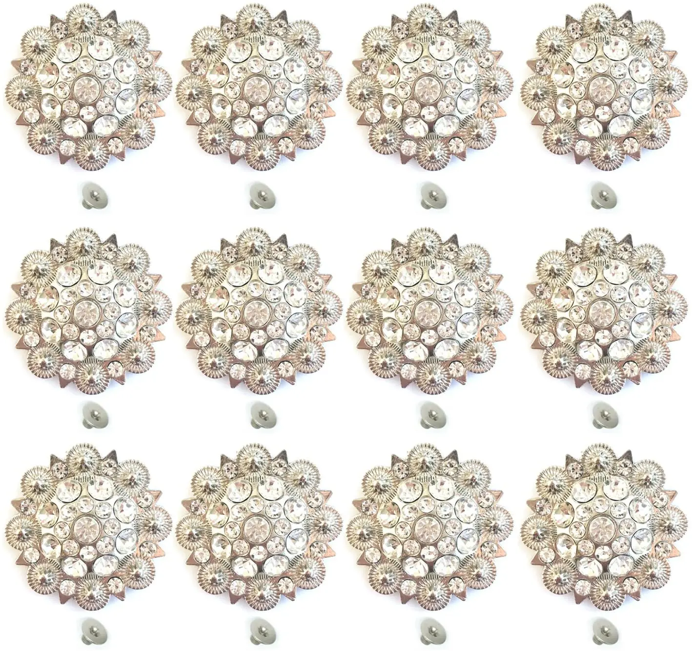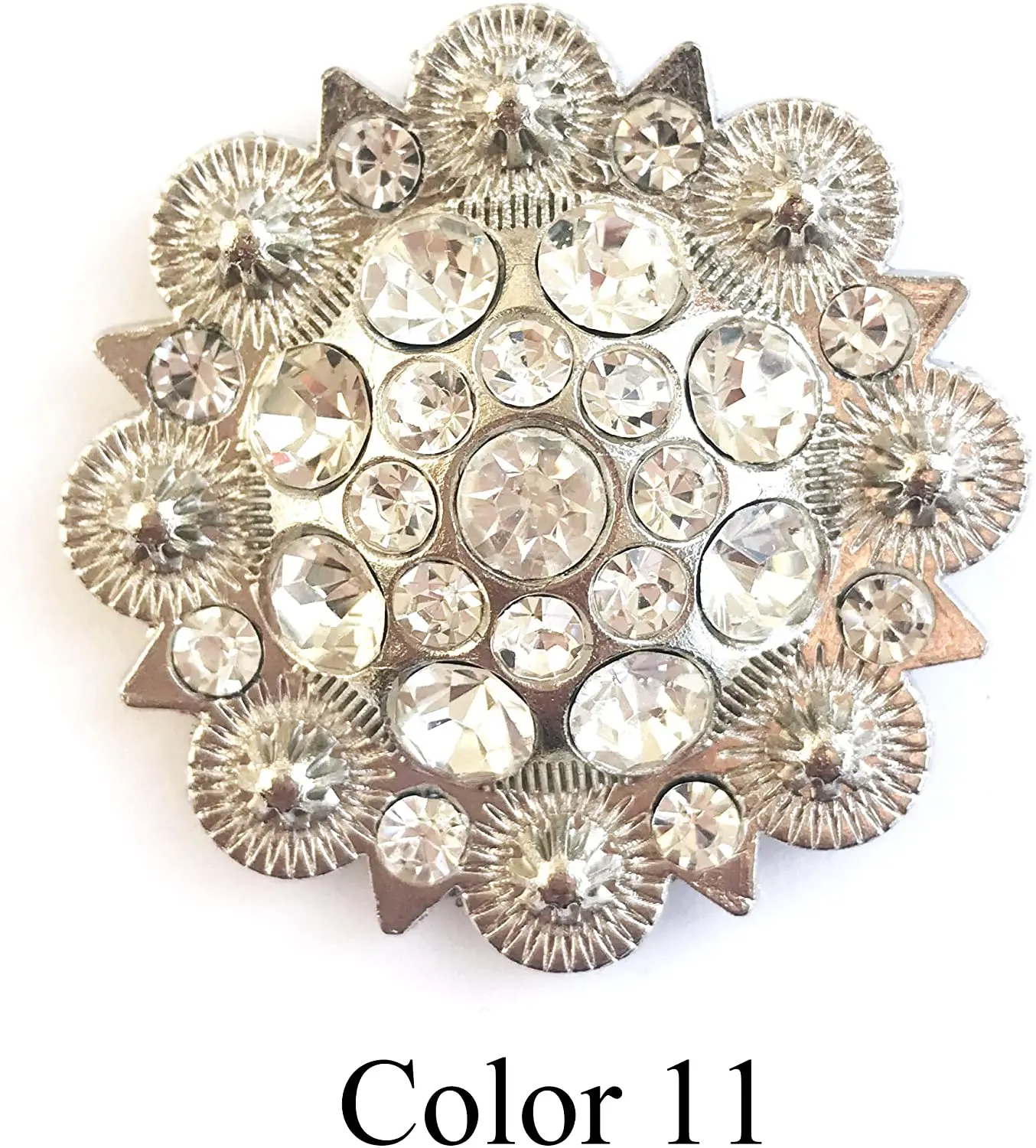 Western denim belt accessories Berry Conchos with Screws Metal Flower Rhinestone Conchos 12 Pieces (Color 11)