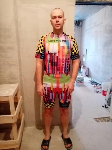 Качество ткани так себе, расцветка не такая как на фото, цвет ярче и клетка совсем другая. Пампер хороший для вело отлично, но для триатлоне по пойдет т.к. очень большой, будет долго сохнуть после плавания.