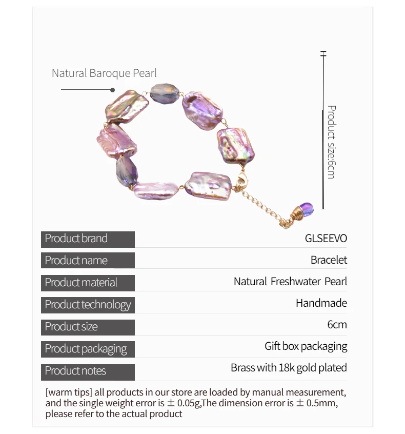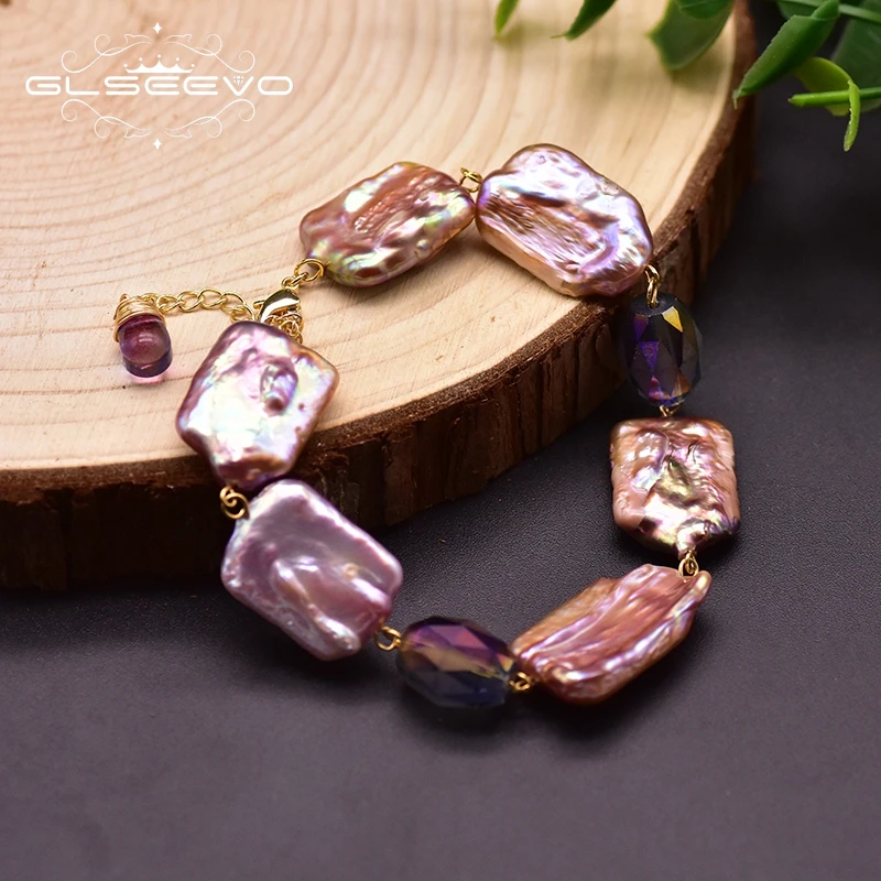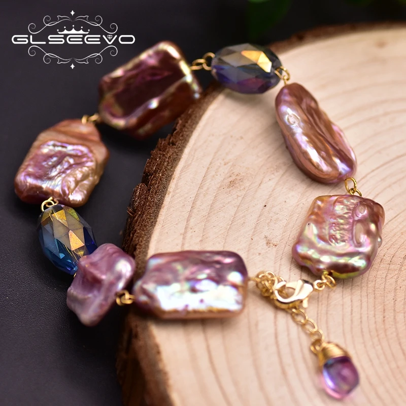 Браслеты Женские GLSEEVO, оригинальный дизайн, натуральный разноцветный барочный жемчуг, регулируемые, GB0206