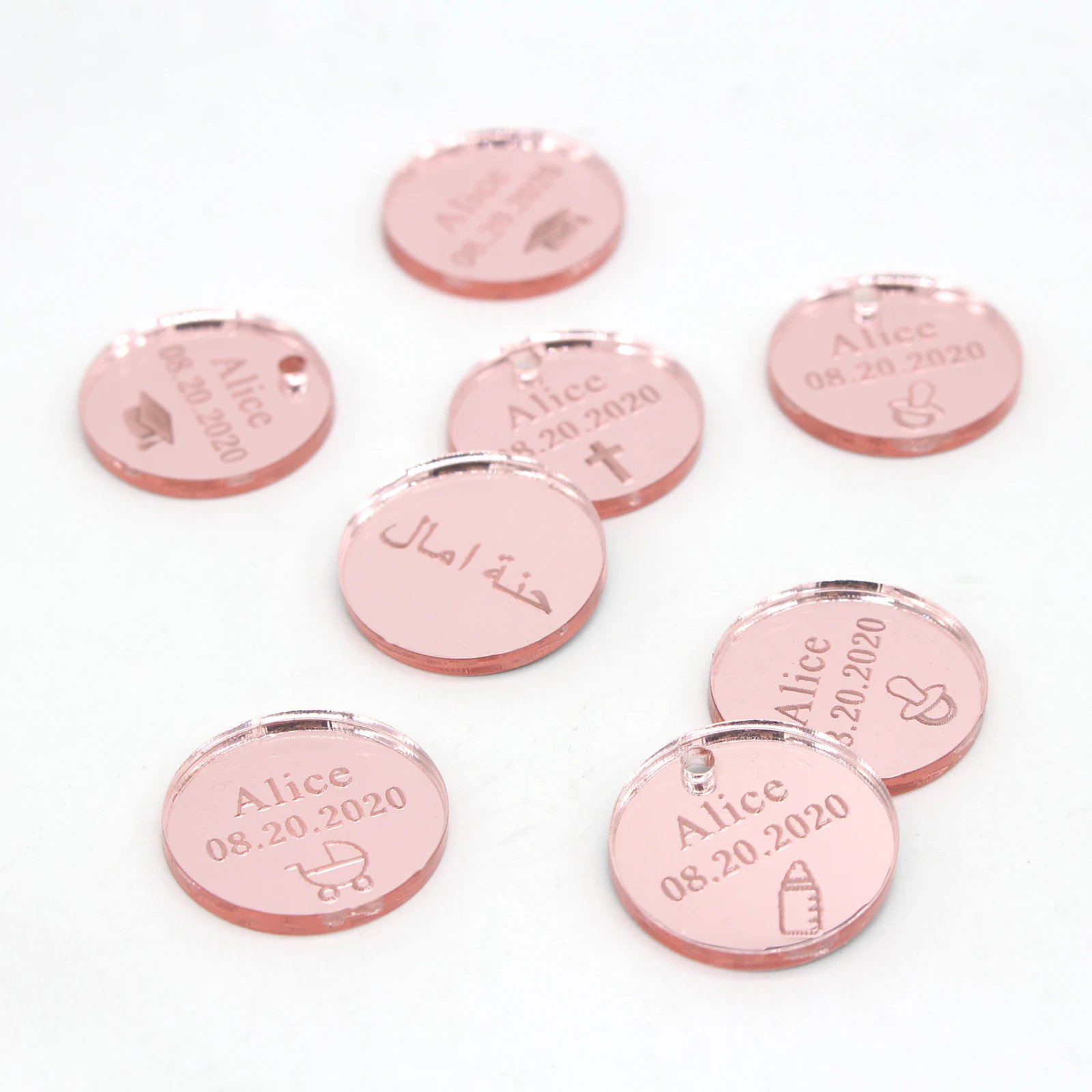 Акриловые зеркальные круглые украшения для свадебного стола под розовое золото с гравировкой имени ребенка, 50 шт.