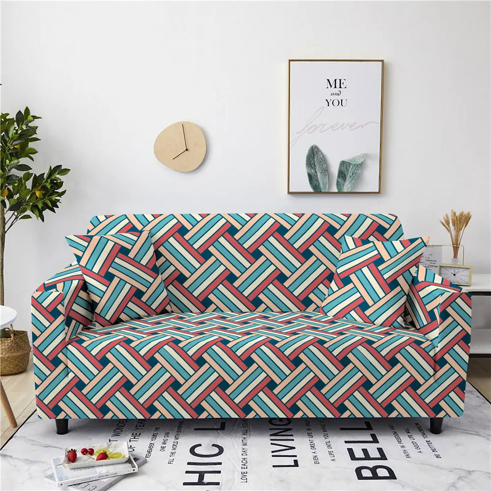 Геометрический эластичный чехол для дивана в гостиную, полиэстеровы...