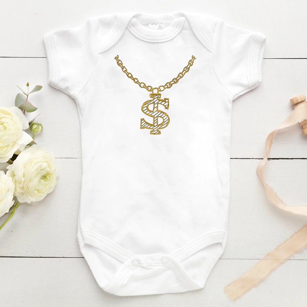 Золотая цепочка, детское боди, детское ожерелье, комбинезон, доллар США, детский наряд для выращивания, Забавная детская одежда, подарок для будущей мамы