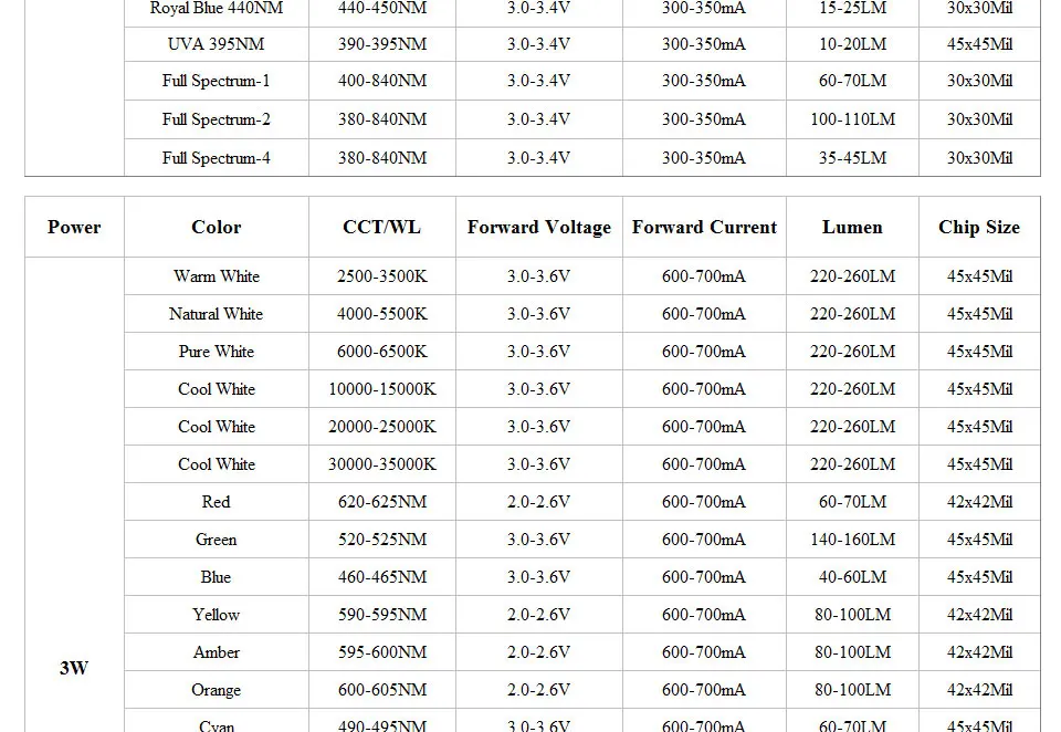 Характеристики: 100% новый и высококачественный Безопасный, энергосберегающий, безопасный, не загрязняющий окружающую среду, удобный, экологичный продукт Светодиодный излучатель: 3 Вт Излучаемый Цвет: белый/теплый белый/естественный белый/UV395NM/полный spcturm/RGB Напряжение постоянного тока (VF): 3,2-3,4 в/3,4-3,6 В Прямой ток: 300 мА/750 мА Угол свечения: 120 градусов Срок службы:> 100000 часов Интенсивность света: 100-120 люмен/-люмен Цветовая температура: теплый белый 2800-3000K, Белый 6500-7000K Применение: Мощсветодиодный ы 1 Вт 3 Вт, широко используемые в общем освещении, контурных светодиодный ных фонарях, садовых светодиодных фонарях, потолосветодиодный светодиодных фонарях, декоративных светодиодный ных фонарях, архитектурсветодиодный светодиодных фонарях, светодиодный ных уличных фонарей и т. д.