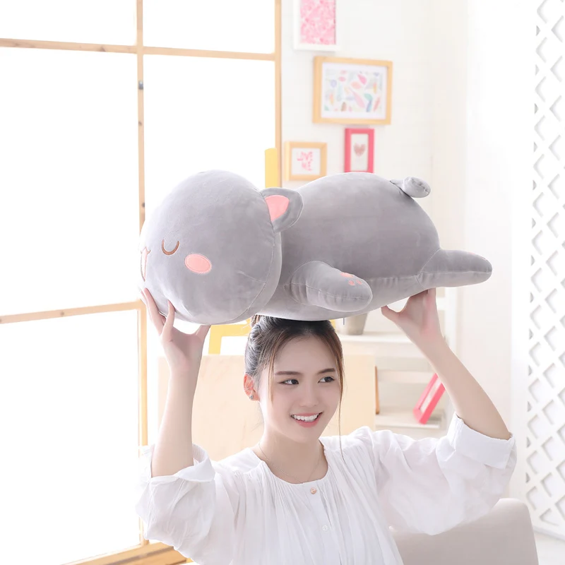 Мягкая плюшевая игрушка Kawaii Cat, лежащая Подушка 35 см 50 см 65 см, Белый Серый, детская игрушка, подарок для детей на день рождения