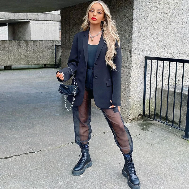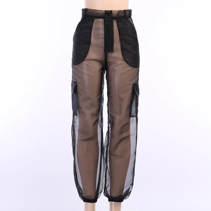 Женские прозрачные брюки-карго WannaThis, черные, с сеткой, прозрачные, с высокой талией
