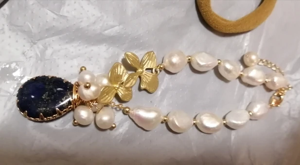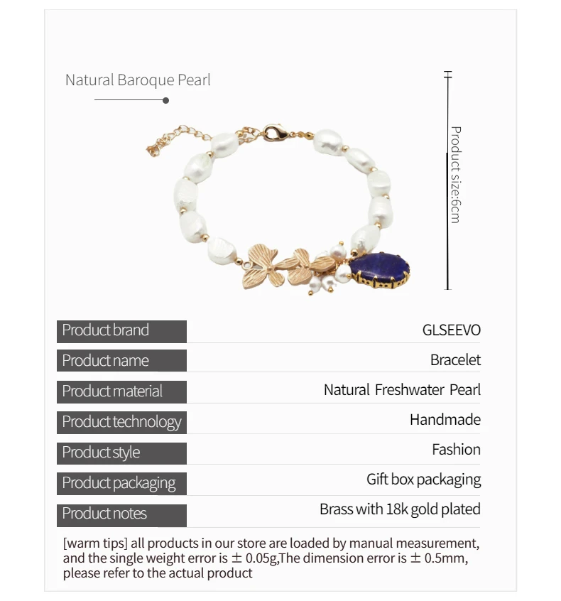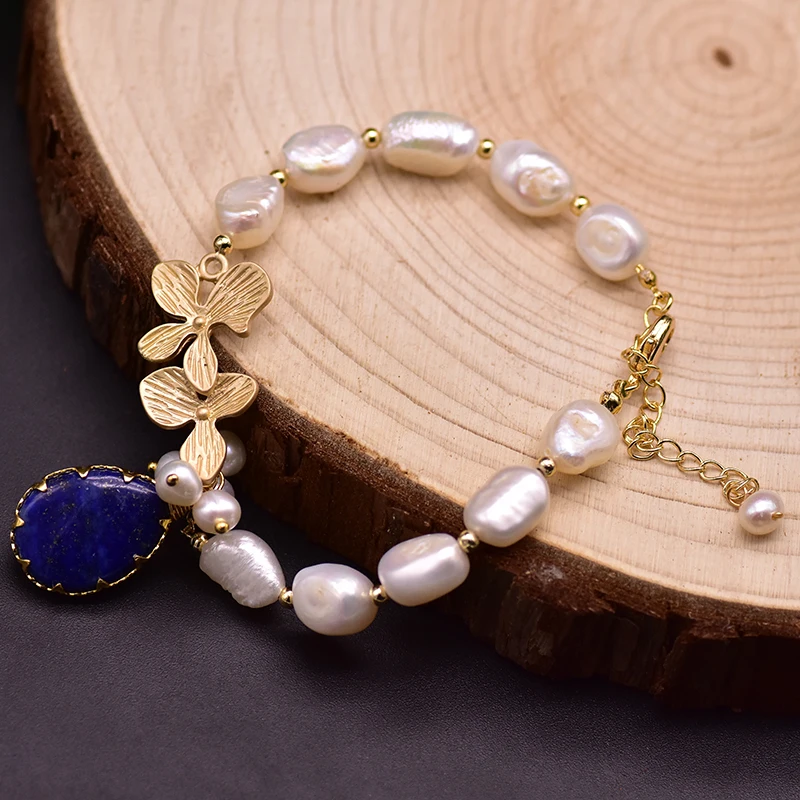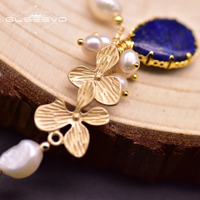 Оригинальный дизайн GLSEEVO, Белый Пресноводный барочный жемчуг, лазурит, браслет с подвесками для женщин, ювелирные изделия на годовщину GB0209