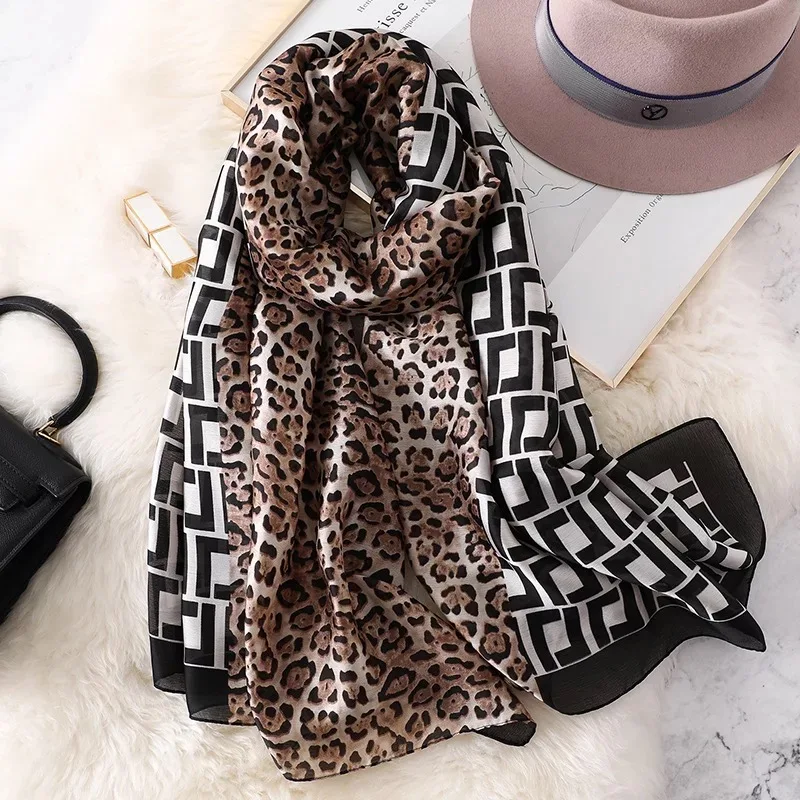 Шаль женская летняя, из шифона, с леопардовым принтом, шелковое кашне