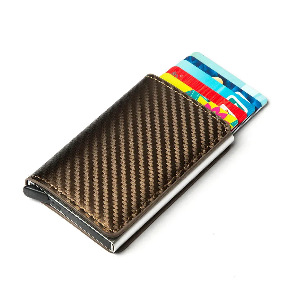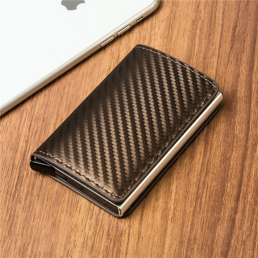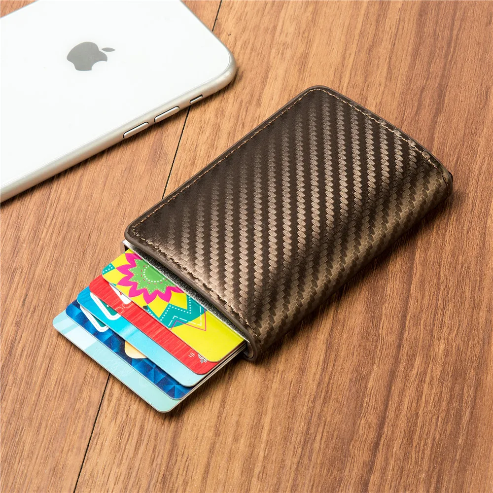 ZOVYVOL алюминиевый держатель для карт, клатч из углеродного волокна и кожи, новинка 2021, металлическая коробка с радиочастотной идентификацией, тонкий Новый чехол для смарт-карт, выдвижной кошелек