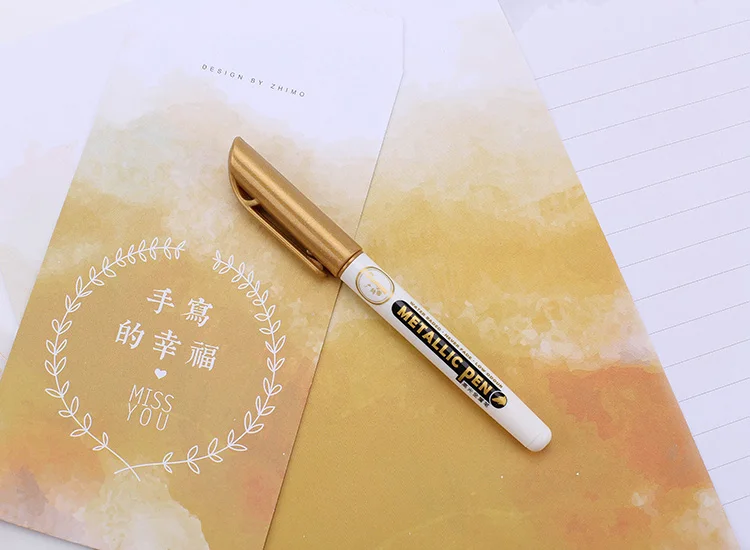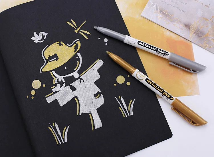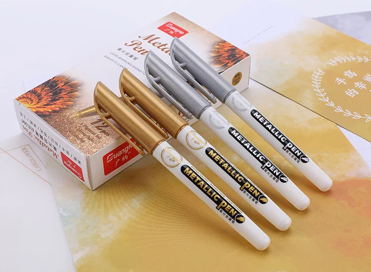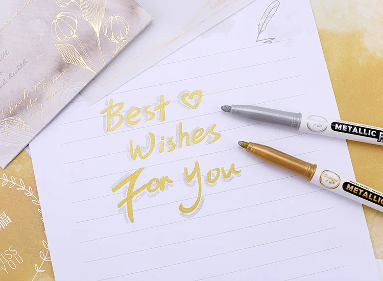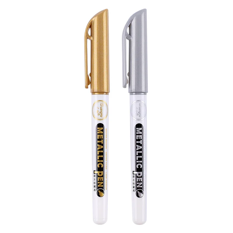Металлические Водонепроницаемые перманентные маркеры для рисования, 2 шт.лот, золотистые и Серебристые маркеры для творчества, школьные принадлежности для рисования