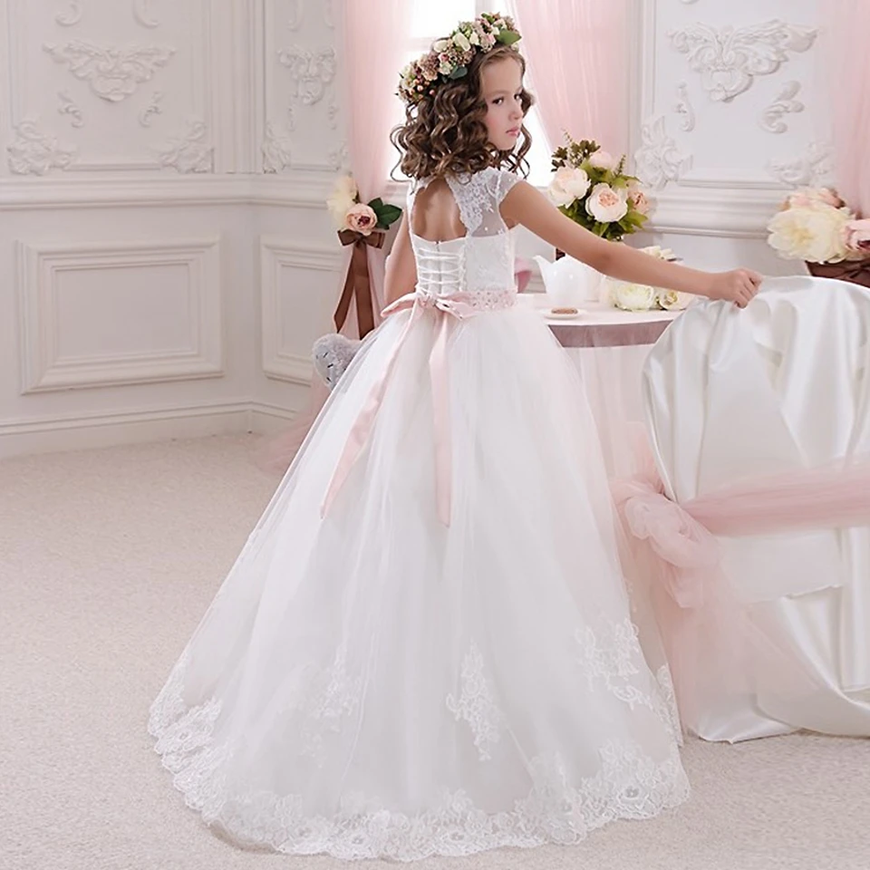 Бальное платье, Цветочное платье для девочек, кружевные аппликации,...