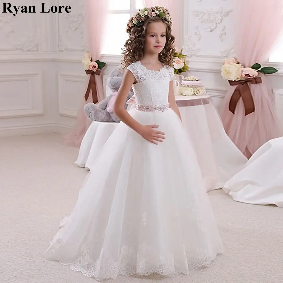 Платья для девочек для первого причастия, кружевные милые белые пла...