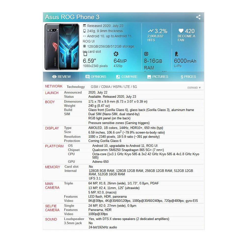 6,59 "Оригинальный ЖК-дисплей для ASUS ROG Phone 3 ZS661KS ZS661KL,...