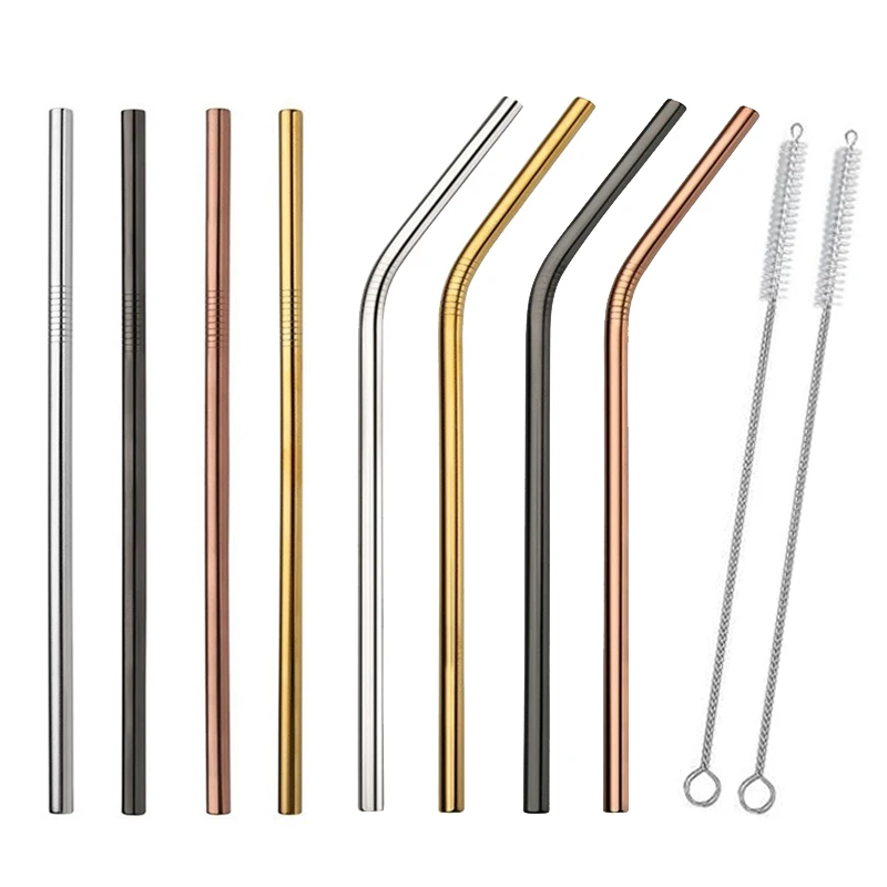 48 шт. многоразовые металлические соломинки для напитков 304 нержавеющая сталь прочная изогнутая прямая СеребрянаяЗолотаяРозовая Золотая соломинка для напитков