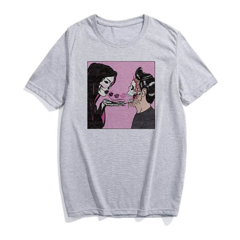 Женская футболка в стиле Харадзюку, с круглым вырезом и принтом черепа