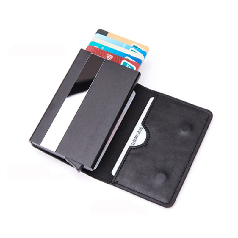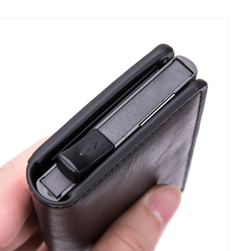 Мужской и Женский футляр для магнитных карт Bycobecy в алюминиевой коробке, Умный кошелек из искусственной кожи с защитой от кражи и RFID-блокировкой, чехол для удостоверения личности