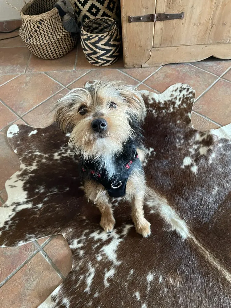 Superfijn harnas, is de tweede al, in een andere kleur, perfecte pasvorm, superieure kwalteit. Mijn hond is 40 cm hoog, 35cm rond nek en weegt 11kg. Heb een M.
