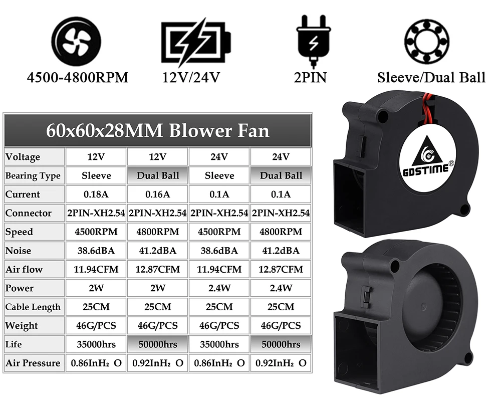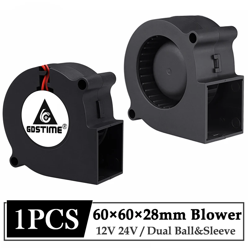 Бесщеточный охладитель постоянного тока GDSTIME, 12 В, 24 В, 60x60x28 мм, 60 мм, 2-контактный центробежный вентилятор охлаждения, 6028 дюйма, 6 см втулка, двойной шаровой радиатор