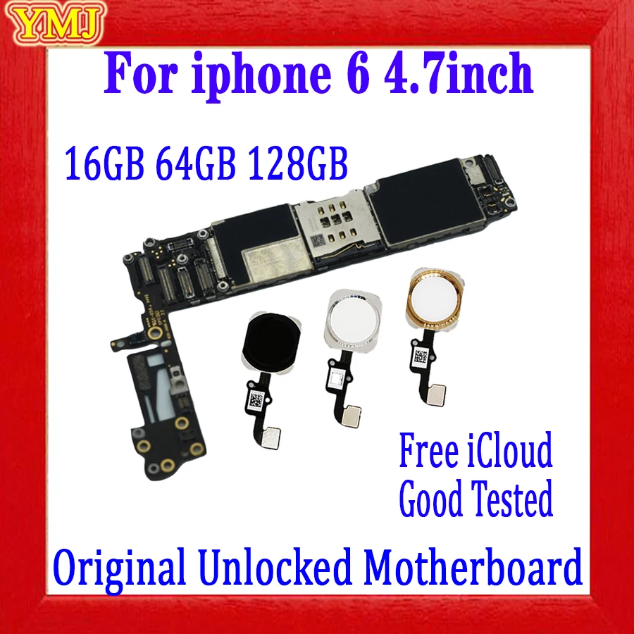 Оригинальный разблокированный для iphone 6 4,7 дюймов материнская плата с/без за счет сканера отпечатков пальцев, полным набором чипов и 100% Бесплатная проверка icloud логическая плата с установленной IOS, 16GB/64GB/128GB