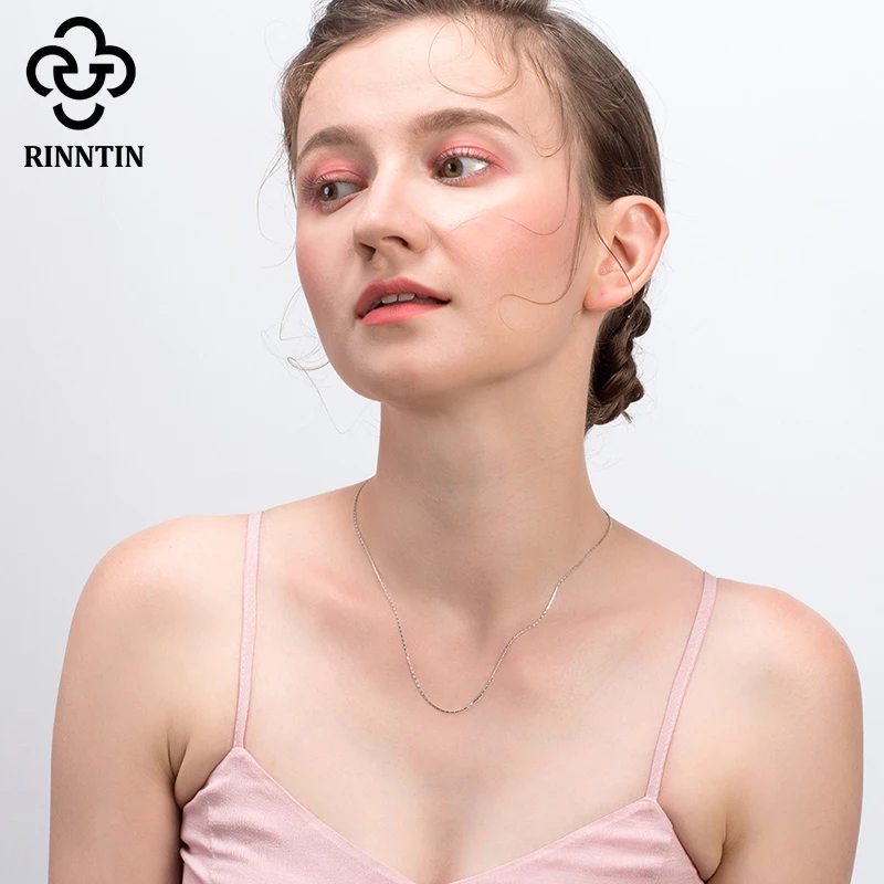 Rinntin 100% S925 серебряные женские O сшивки тонкая цепочка ожерел...