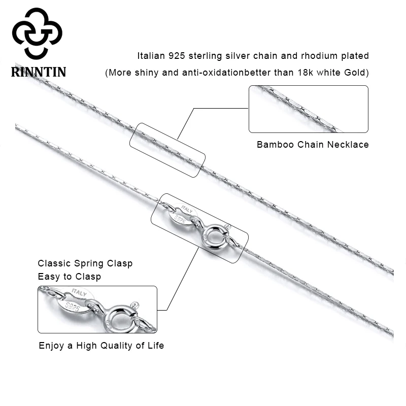 Rinntin 925 стерлингового серебра бамбук ссылка тонкая цепочка для женщин 40 см45 см50 см женское ожерелье ювелирные изделия для Кулон Ювелирные Украшения SC21