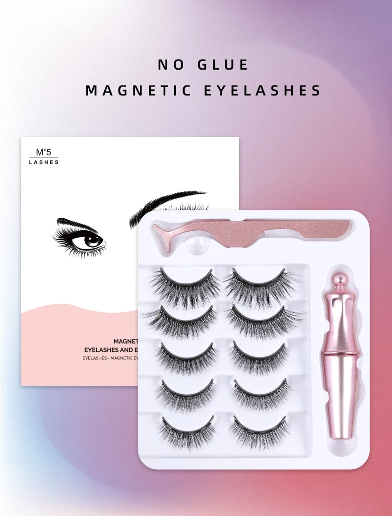 5 пар магнитных накладных ресниц, магнитная жидкая подводка для гла...