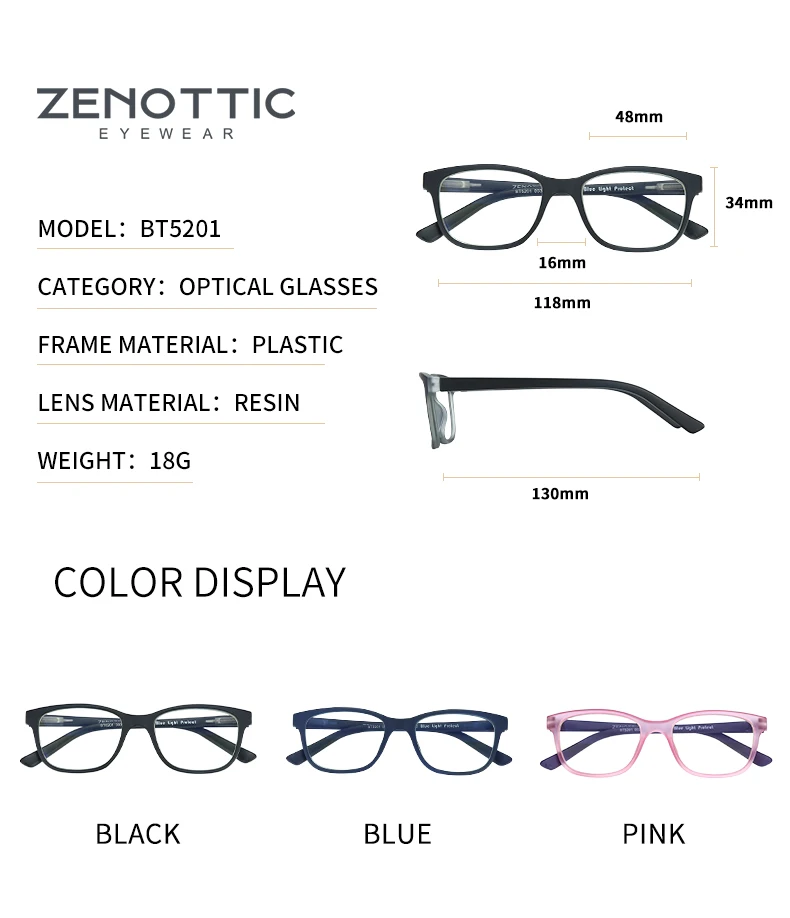 Очки ZENOTTIC Детские с блокировкой сисветильник, оптические аксесс...
