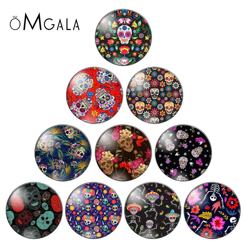 Цветок конфеты сахарный череп скелет невесты изображение Стекло драгоценные камни кабошон купол демо плоские с оборота для украшений своими руками на Хэллоуин ювелирные изделия аксессуары