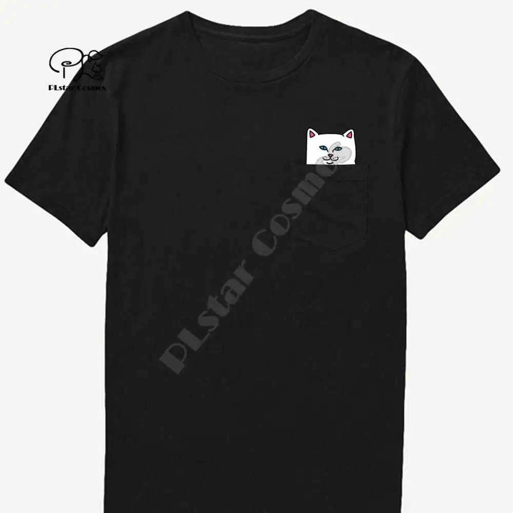Мужская футболка, модная брендовая новая футболка с карманами и мультяшным принтом кота, мужские Рубашки, Топы в стиле хип-хоп, Забавные футболки в стиле Харадзюку 2