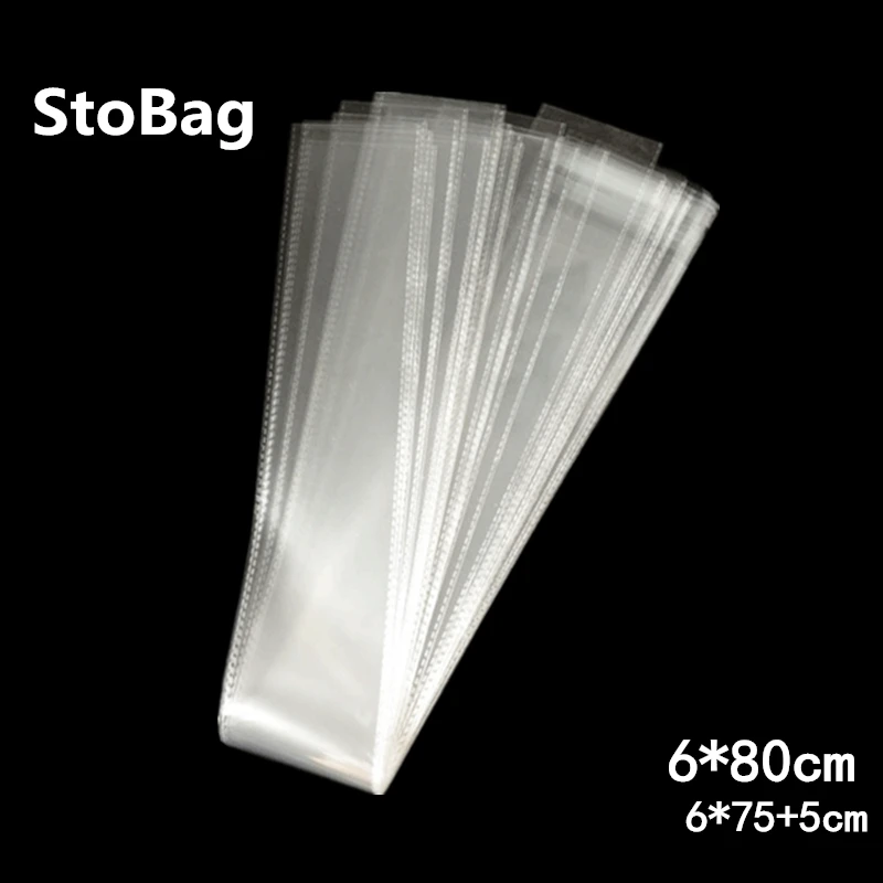 StoBag 200 шт. 8*64 см прозрачный самоклеящийся пластиковый пакет д...