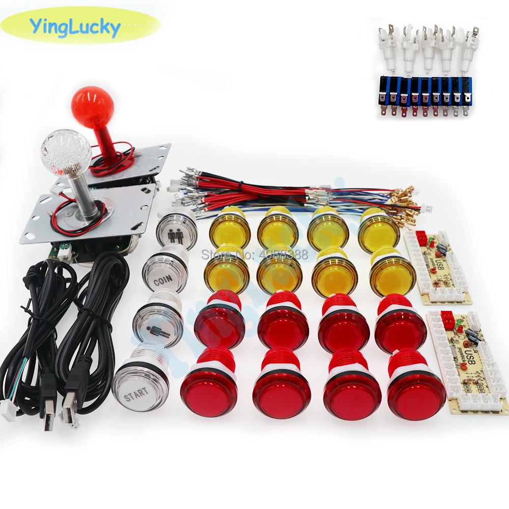 DIY LED джойстик аркадные наборы 2 игрока с 20 светодиодными кнопками для аркадной игры + 2 джойстика + 2 USB энкодера комплект + кабели аркадная игра запчасти
